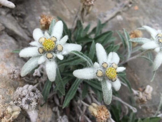 The woods around Val D’Isere are full of Phyteuma, Lilies, Campanula and Orchids, whilst the meadows beneath Tignes are extremely rich. The alpine turf on the way back is full of Dryas, Sempervivum and Centaurea.