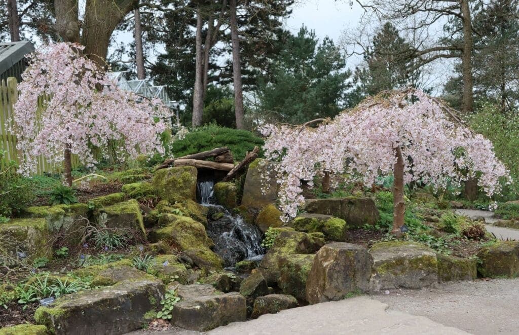 There are still cherries in flower but the blossom is falling as predicted Around the top pool in the rock garden Prunus pendula ‘Pendula Rosea’ was still in full flower. The blossom from the tree by the alpine yard gate Prunus pendula f. ascendens ‘Rosea’ has already fallen. This year ...(more below)